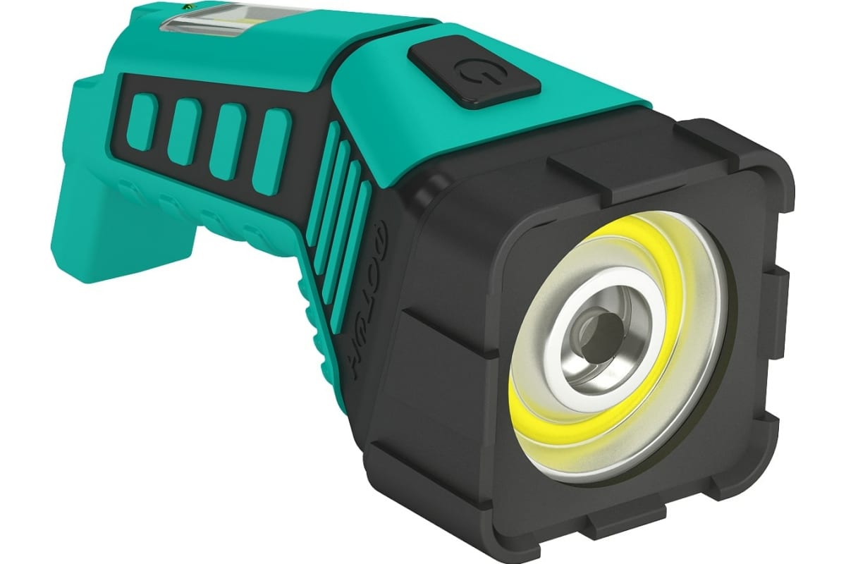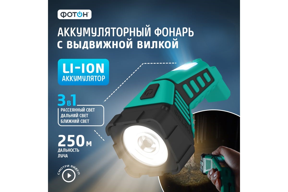 Уникальный дизайн – форма фонаря и цветовое решение созданы в стиле профессионального инструмента. Устойчивая конструкция позволяет ставить или класть фонарь, не опасаясь опрокидывания. Кольцевой COB-диод высокой мощности позволяет создать равномерное освещение на расстоянии нескольких метров от пользователя, не создаёт резких теней. Три режима работы: направленный свет с фокусирующей линзой, рассеянный свет кольцевого светодиода и рассеянный свет от боковой панели светодиодов. Резиновое оголовье придаёт фонарю повышенную ударопрочность. Встроенное зарядное устройство с выдвижной вилкой удобно в использовании, фонарь всегда готов к зарядке, если рядом есть розетка бытовой сети 220В. Аккумулятор высокой емкости обеспечивает не менее 500 циклов полного заряда/разряда фонаря. Двухрежимный индикатор заряда выключается при полной зарядке аккумулятора.