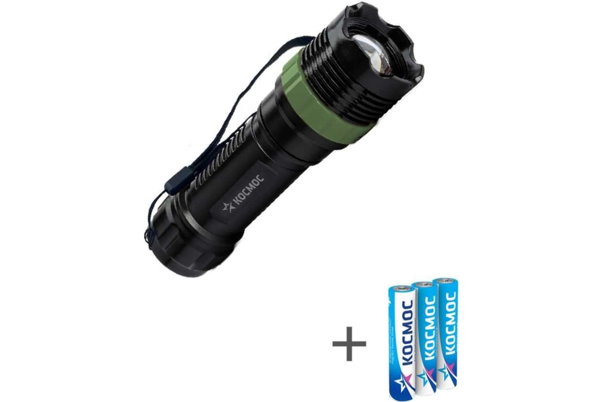 Фонарь ручной КОСМОС (KOC121B) - недорогой зум-фонарик на батарейках. Компактный и легкий, с тактическим расположением кнопки на тыльной стороне.