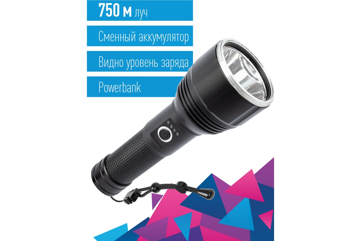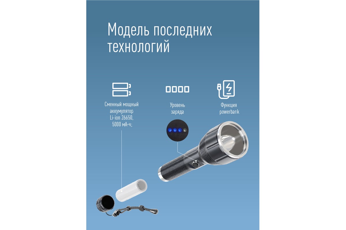 -Фонарь со съемным аккумулятором 26650 в комплекте.