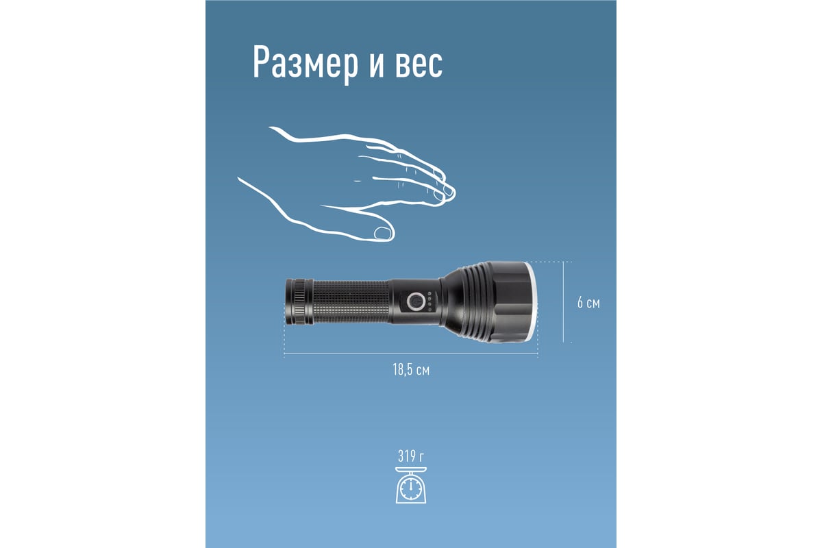 Источник питания: съемный Li-ion аккумулятор 26650 3,7В 5000 мА/ч (входит в комплект), индикатор уровня заряда, зарядный USB-шнур type C в комплекте, функция power bank.