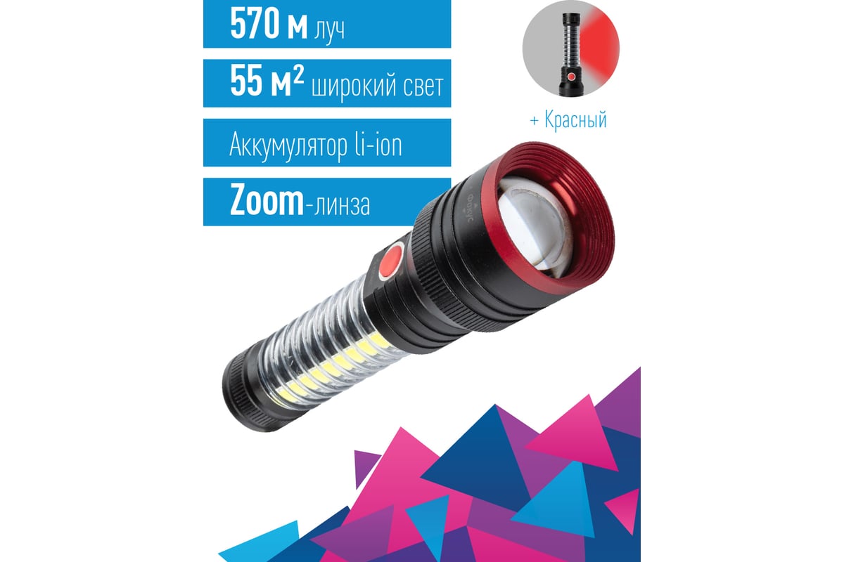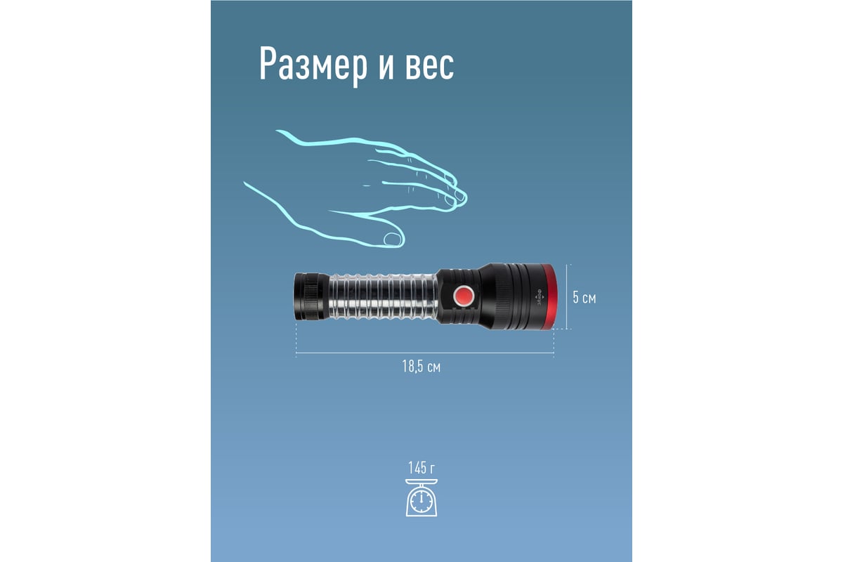 Фонарь ручной КОСМОС (KOC132Lit) - эта модель создана для автовладельцев. В руках этот прочный металлический фонарь ощущается мощно. На борту литиевый аккумулятор 2200 мА·ч, который питает сильный 10 Ваттный светодиод, и все это «турбировано» мощной зум-линзой, которая может сфокусировать луч на полкилометра!