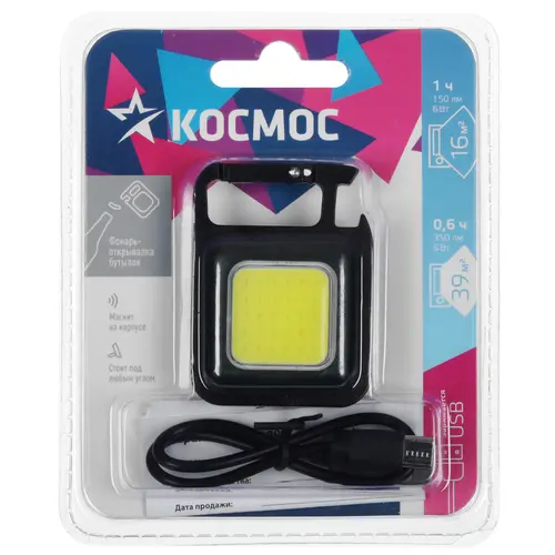 Преимущества КОСМОС брелок аккум/6ВтCOB/Li-po200mAh/USBtypeC/открывалка/магнит/карабин/подстав KOC207Lit