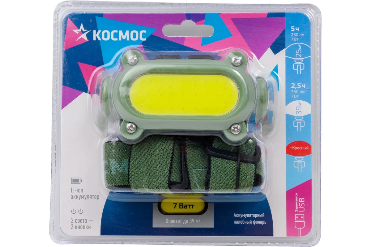 Технические характеристики КОСМОС аккум/7ВтCOBLED+красн/Li-ion 18650 1200mAh/ABSпл/USB-шнур type C KOC503Lit