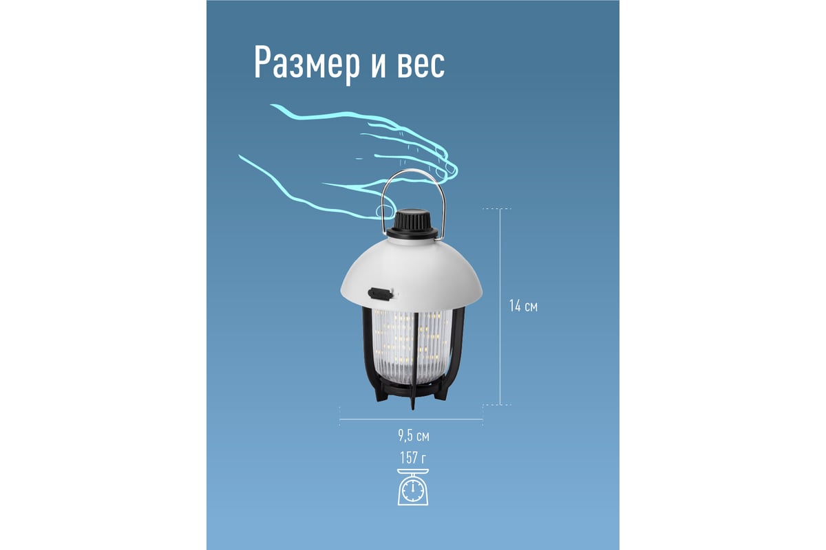 Кемпинговый светильник для загородного отдыха КОСМОС (KOC618Lit). Лампа имеет расслабляющий янтарно-теплый оттенок света, а яркость настраивается диммером под стать ситуации.