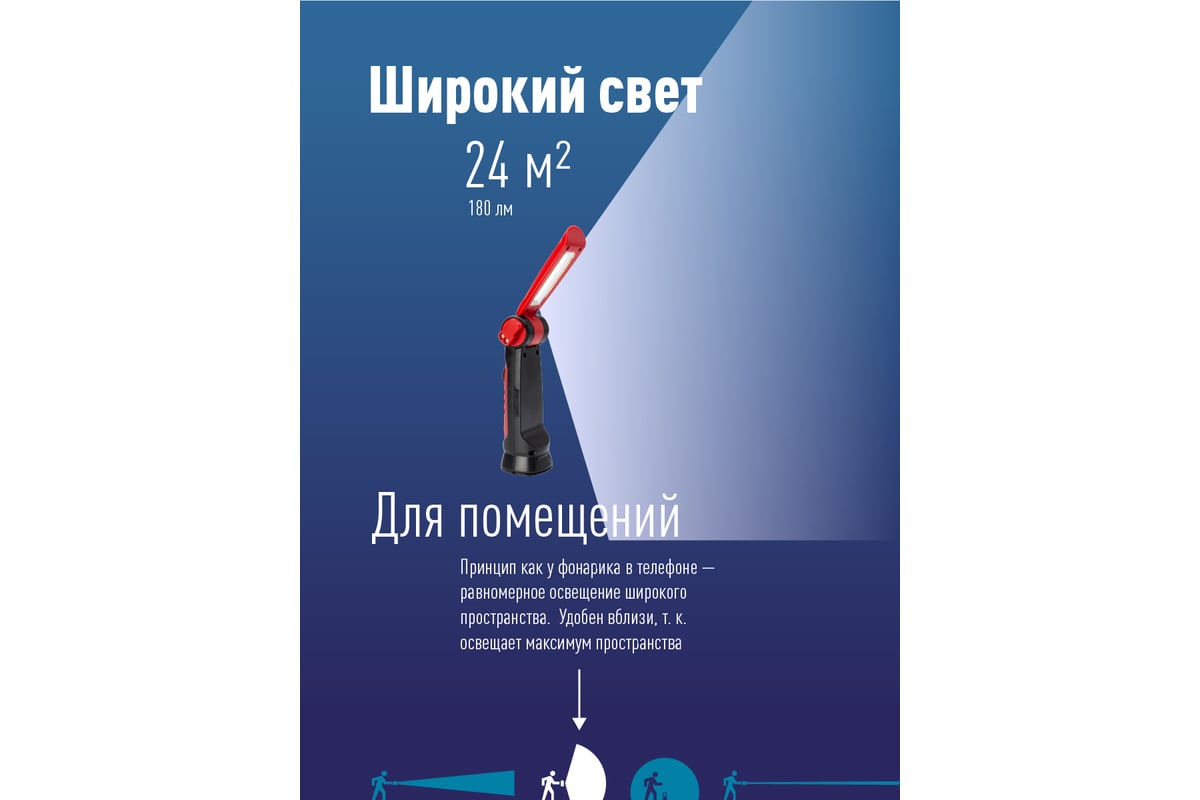 -Дистанция освещения: 120 м. (луч)/24м2 (широкий свет).