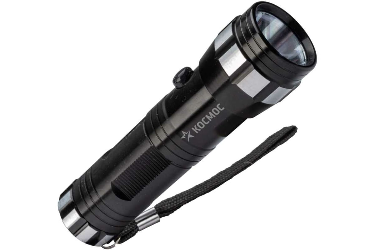Ручной фонарь КОСМОС 1Вт LED/3xAAА/корпус алюминий/ремешок ручной, KOS108B в прочном корпусе из анодированного алюминия авиационного класса не боится ударов и падений. Кнопка расположена сверху - как на обычных фонариках. Источник питания: батарейки 3xAAA (в комплект не входят).