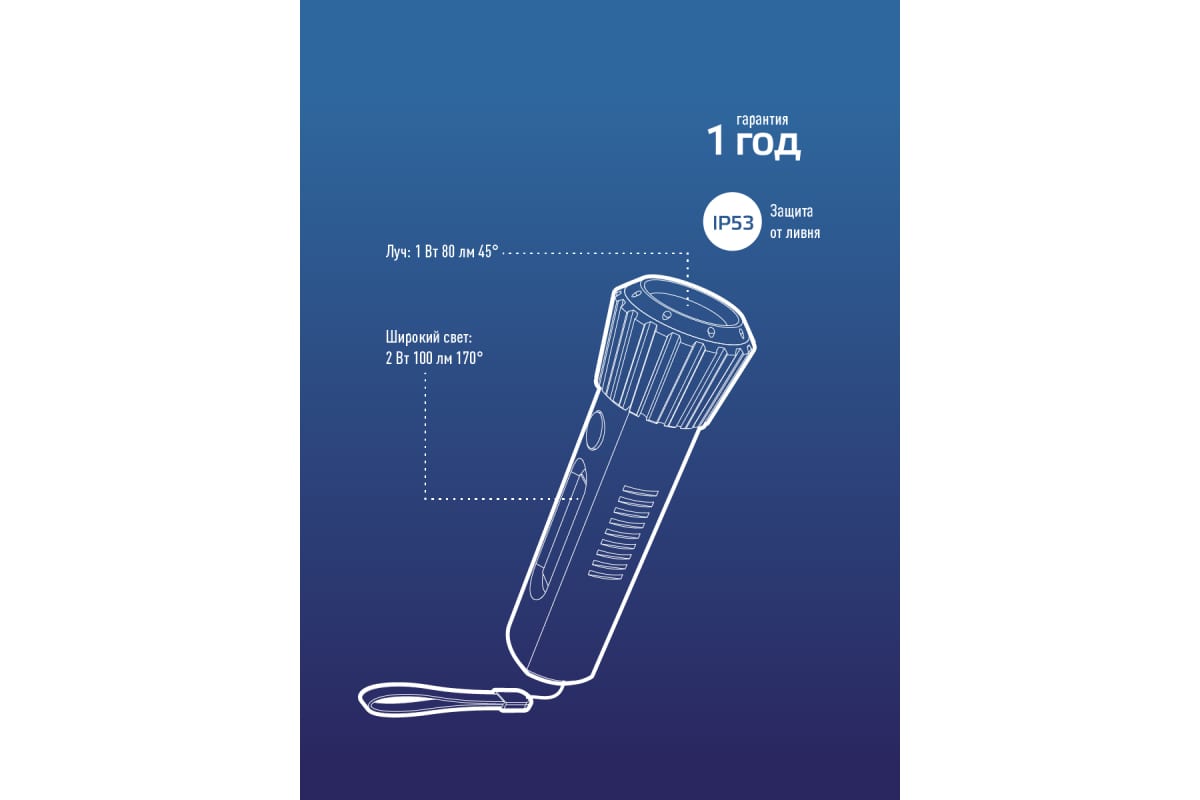 -Количество режимов: 2 (луч, боковой светильник).