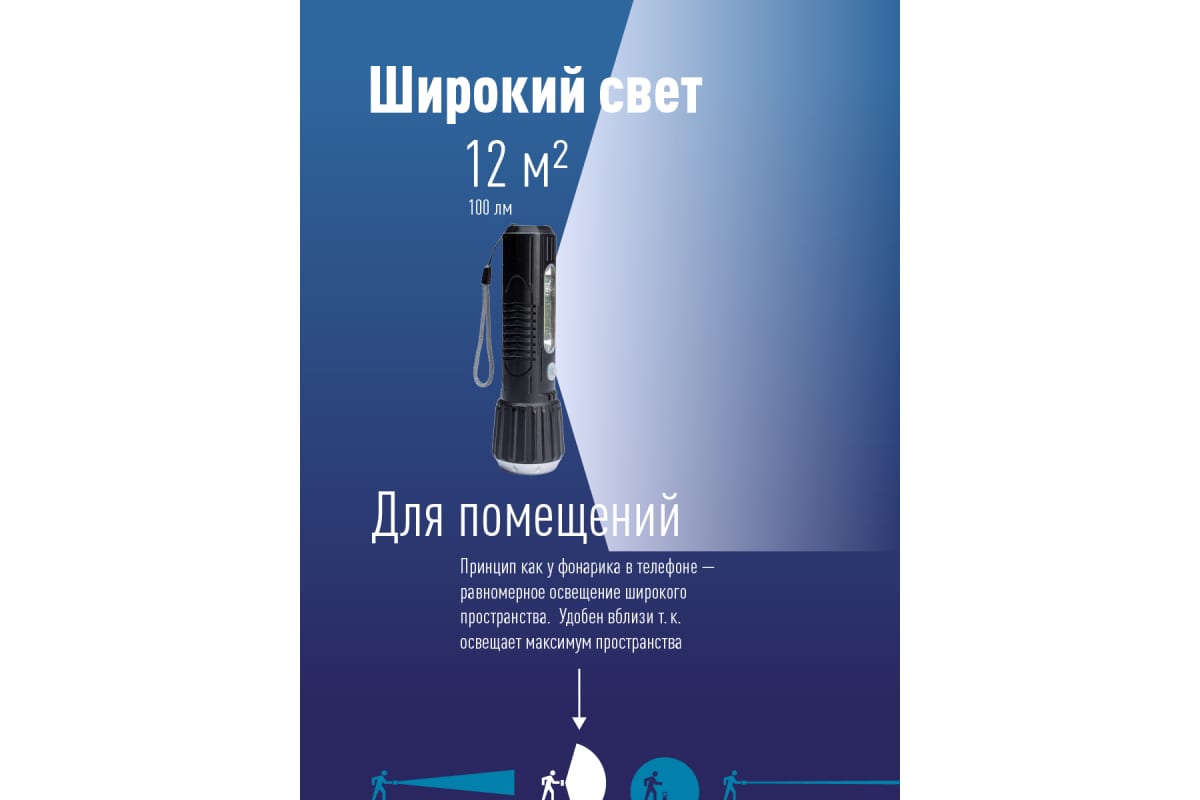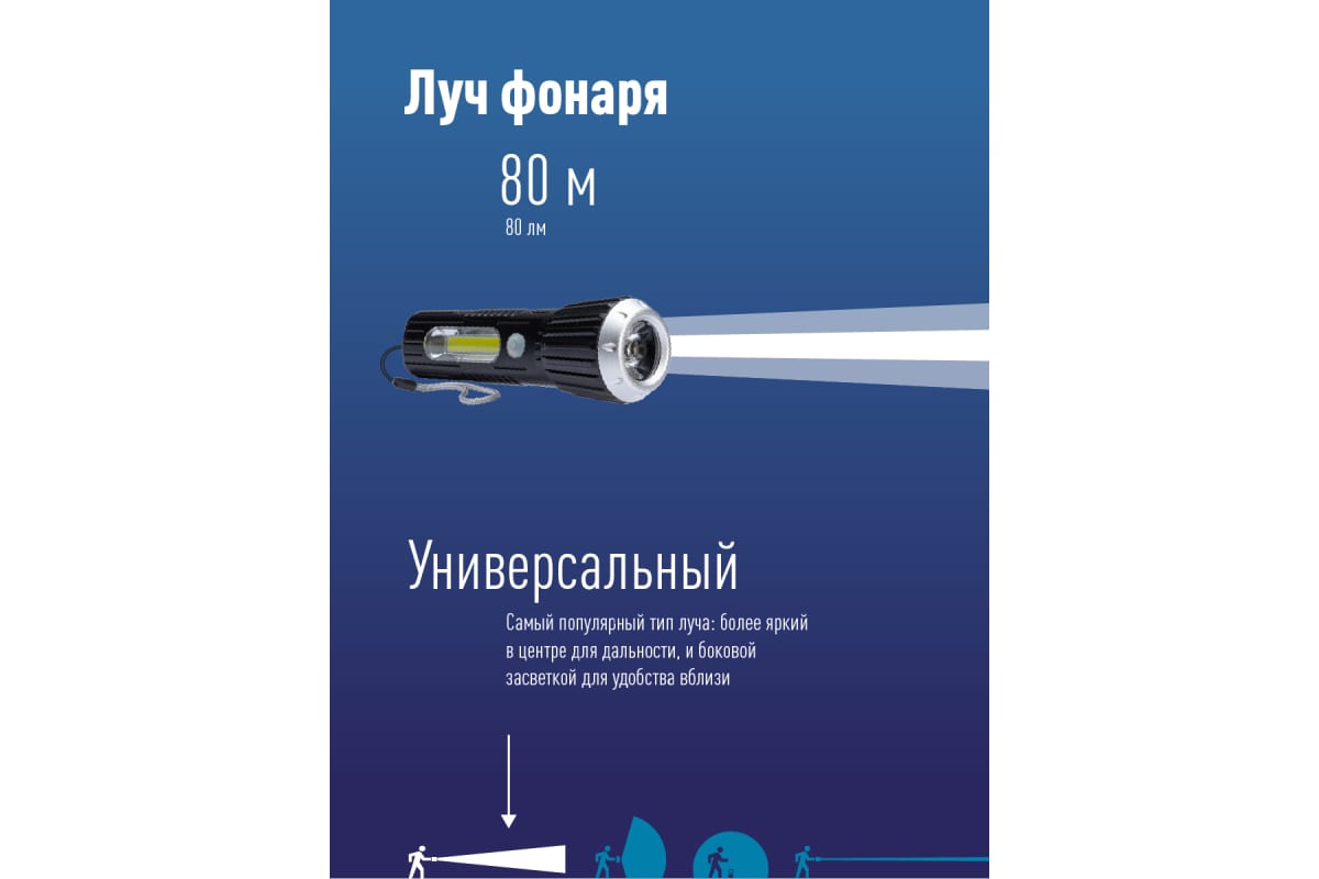 -Дистанция освещения: 80 м. (луч)/12м2 (широкий свет, боковой светильник).