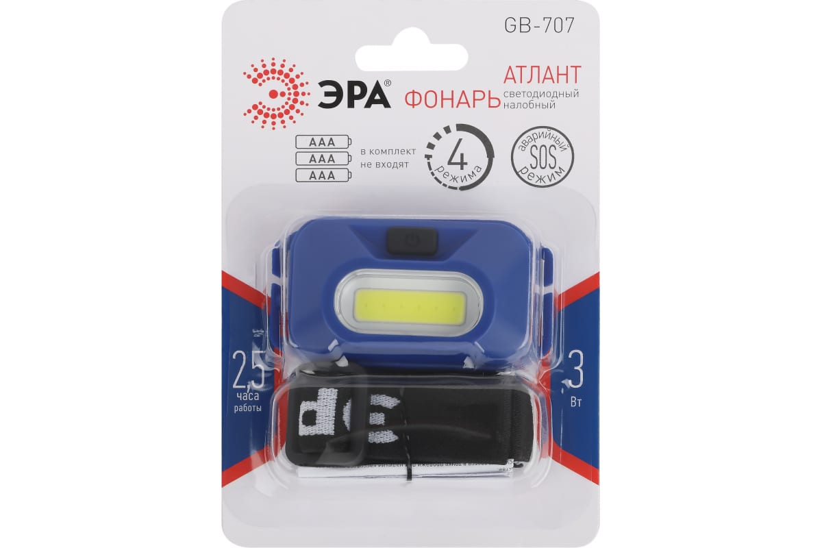 Налобный светодиодный батареечный фонарь ЭРА GB-707 4 режима, 3 Вт, COB, 3хААА, Атлант Б0052749 - компактный и легкий налобный фонарь с 4 режимами работы. Оснащен COB матрицей, которая создает свет дальностью 13 метров. LED-элемент не перегорает и не требует замены в течение всего срока эксплуатации. Прочный корпус защищен от механических воздействий.