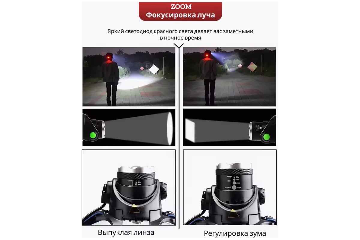 Налобный светодиодный фонарь Focusray 1058 XML T6 629776 - сверхмощный налобный фонарь с зумом на основе ультра-яркого диода и индикатором заряда.