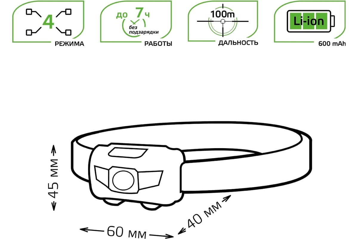 Особенности: Фонарь комплектуется качественным эластичным головным ремнем он обеспечивает надежную фиксацию и комфортное использование. Красный сигнал: сигнальный свет для чрезвычайных ситуаций или для подачи сигналов. Li-ion аккумулятор: ёмкая батарея обеспечивает длительное время автономной работы до 7 часов. Прочный корпус IP44: устойчив к пыли и брызгам, подходит для использования в любых условиях. Универсальность: идеально подходит для различных видов деятельности, таких как спорт, отдых, походы, гаражные работы и многое другое. Зарядка через micro USB: удобная и быстрая зарядка от любого устройства с USB-портом. Высокая дальность света 100 метров: освещает большие расстояния, дарит четкую видимость. 4 режима работы: выбирайте из различных режимов освещения, включая стробоскоп и SOS.