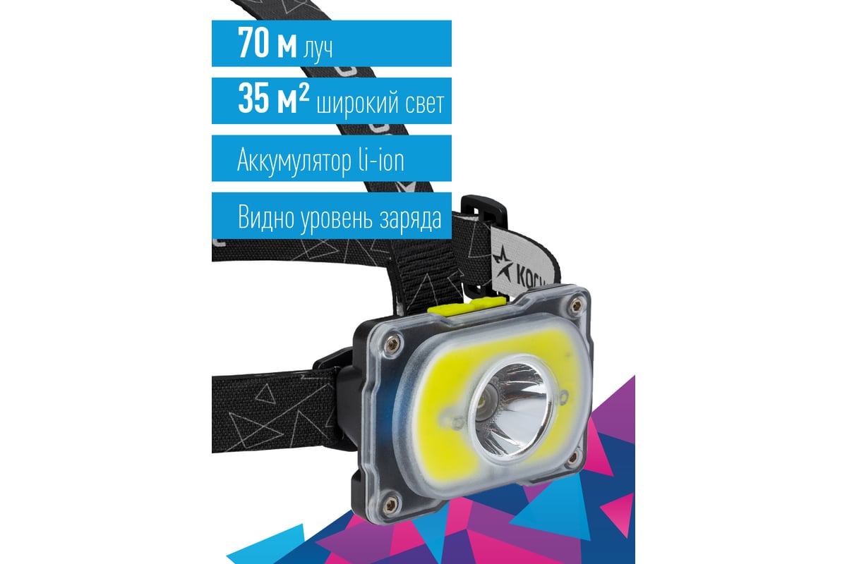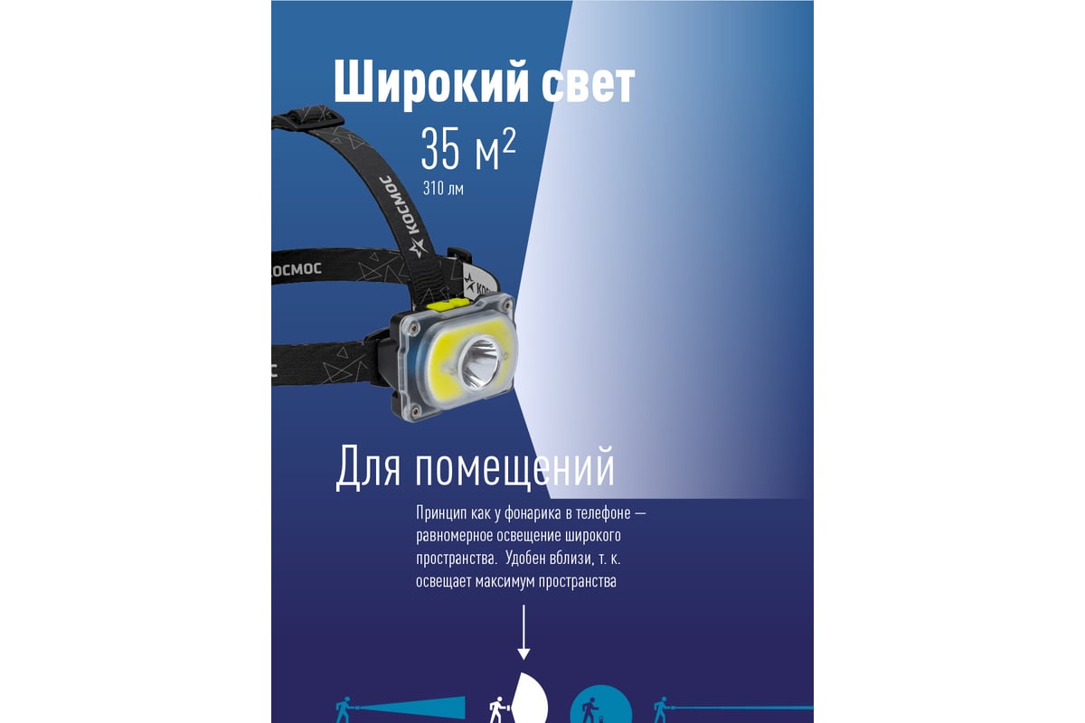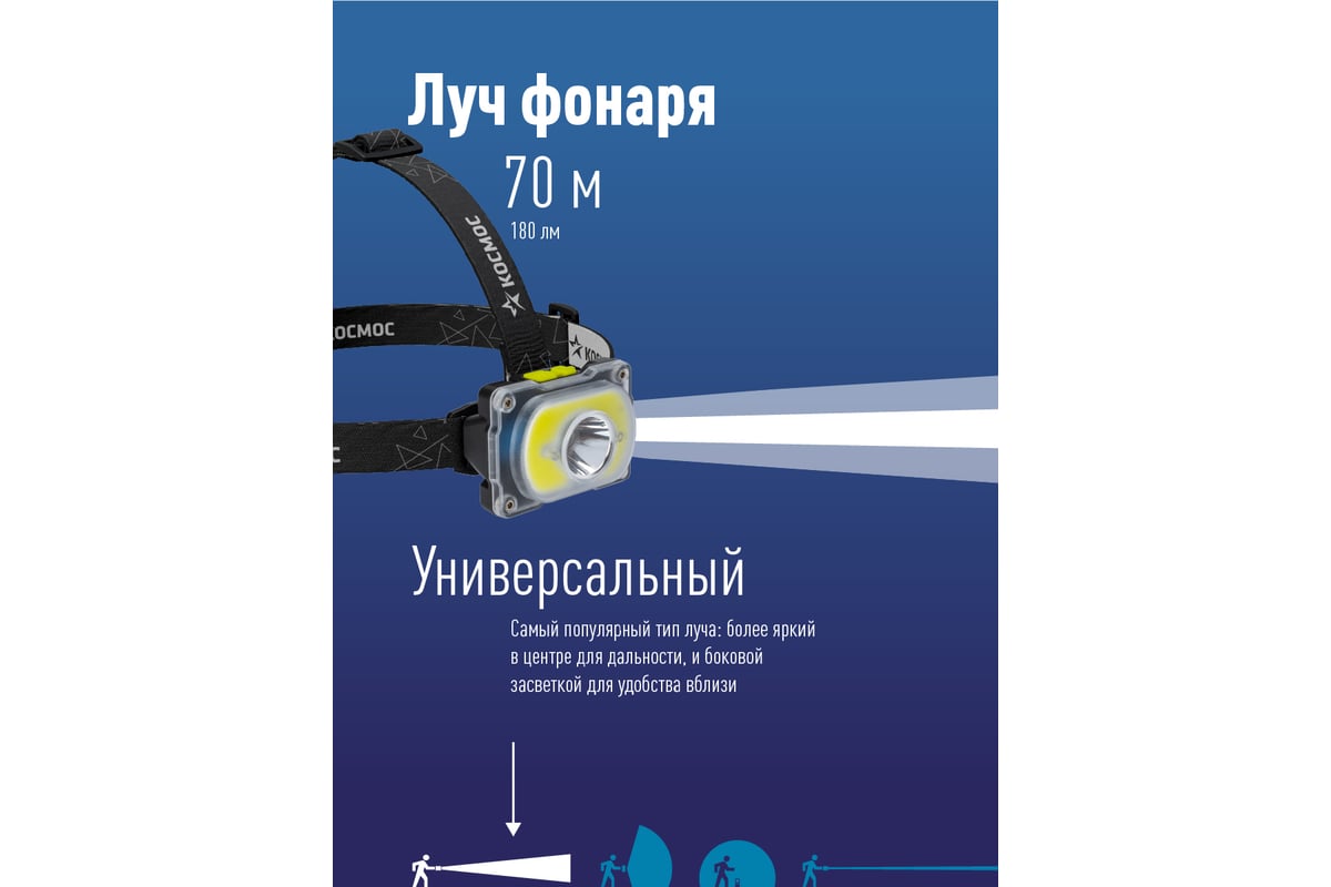 Фонарь налобный КОСМОС (KOC507Lit) - свежий взгляд на дизайн фонаря: вся передняя часть корпуса - рассеиватель из противоударного прочного материала что, во-первых, дает отсутствие стыков, делая защиту от дождя еще надежнее, а во-вторых, большая матовая поверхность делает широкий свет еще мягче, и удобней для заливания светом пространства вблизи. В центре рассеиватель прозрачный, что обеспечивает дальность классического луча.
