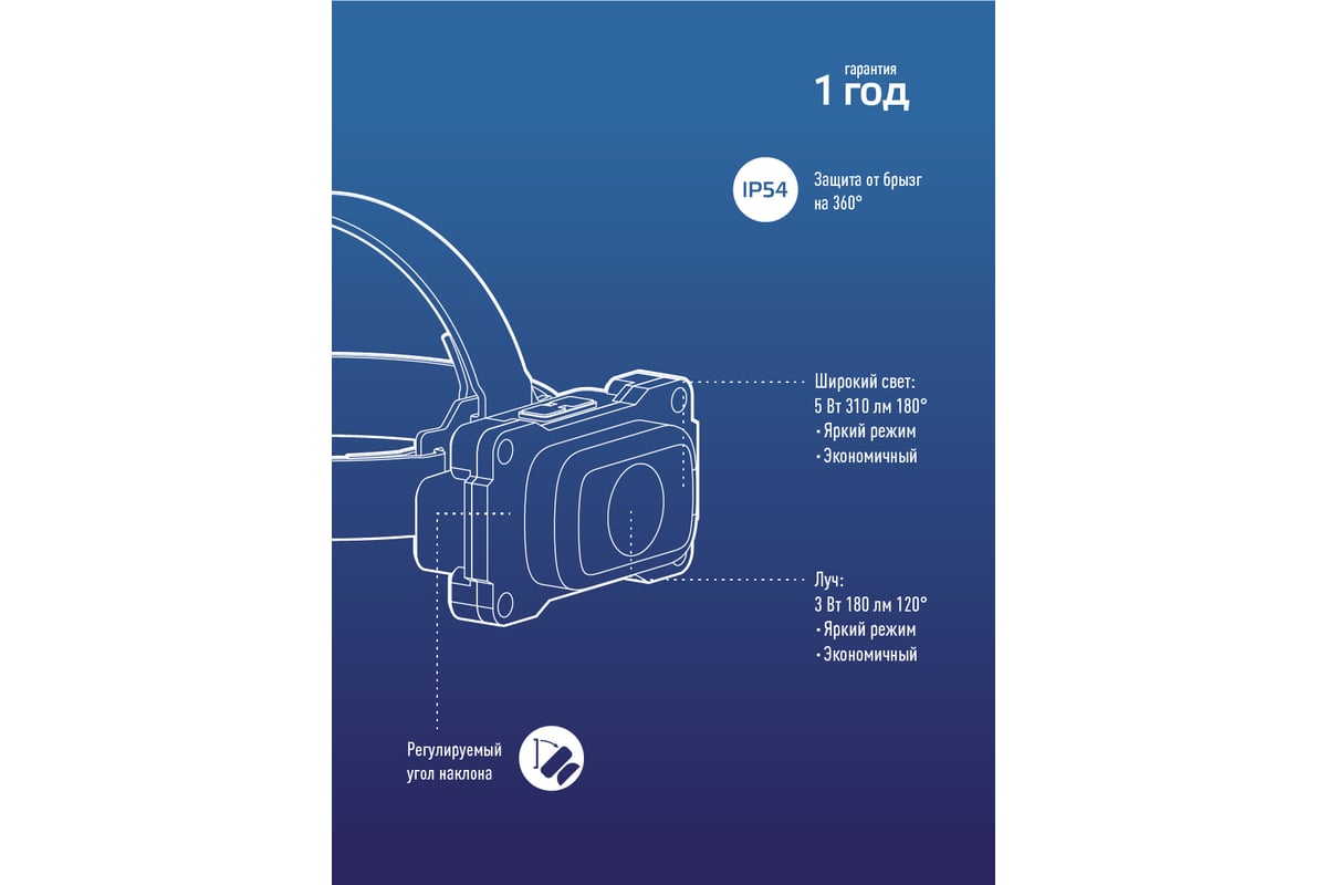 -Световой поток: 180 лм. (луч)/310 лм. (широкий свет).