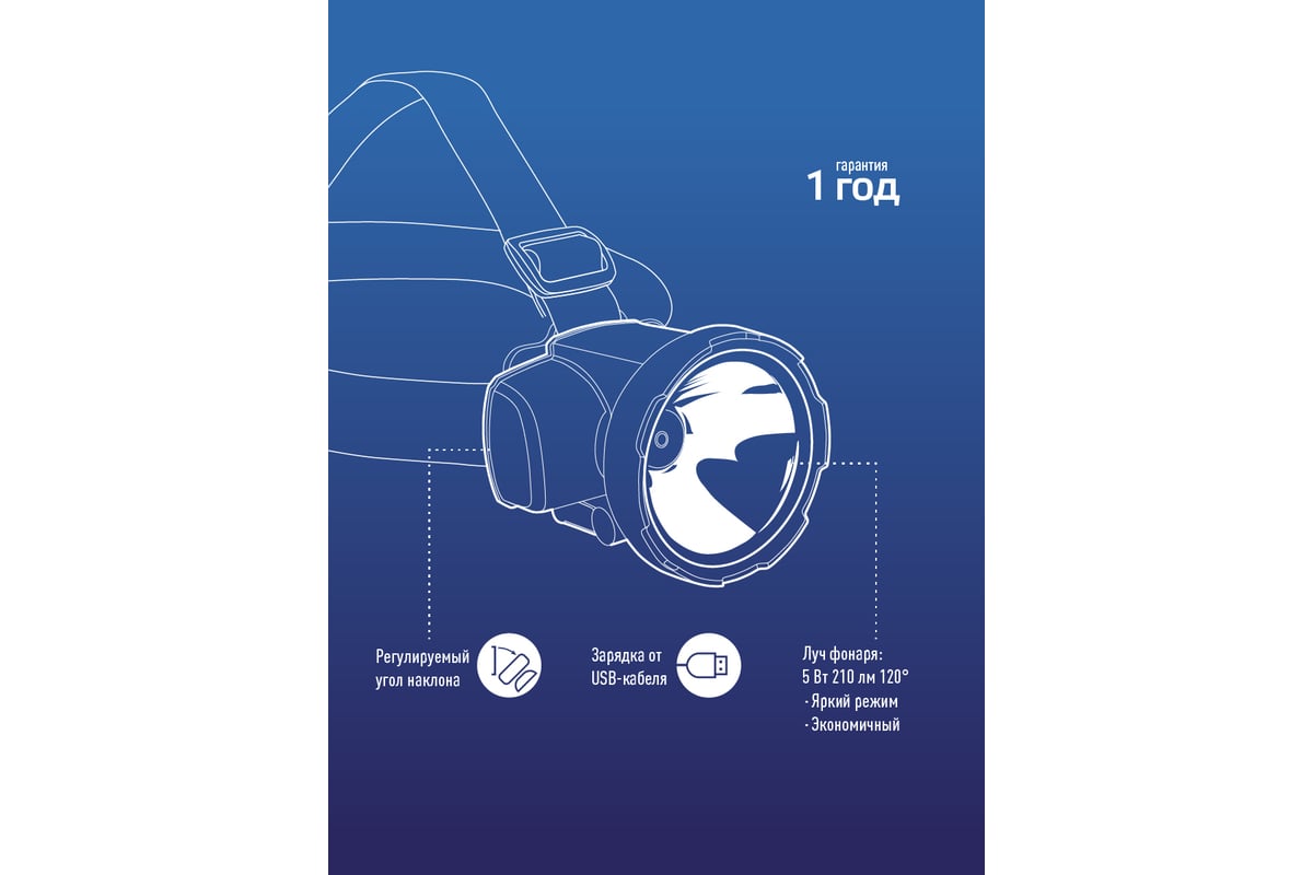 Светодиодный аккумуляторный налобный фонарь КОСМОС 2 режима 5Вт LED 2А.ч зарядка от USB 452442 KOCAccuH5WLED подходит для использования в быту, на даче, в ремонтных мастерских и т. д. Прост в надевании, комфортен в ношении. В качестве источника света представлена одна светодиодная лампа 5 Вт. Фонарь может работать в двух режимах. Заряд встроенного аккумулятора производится через USB-порт.
