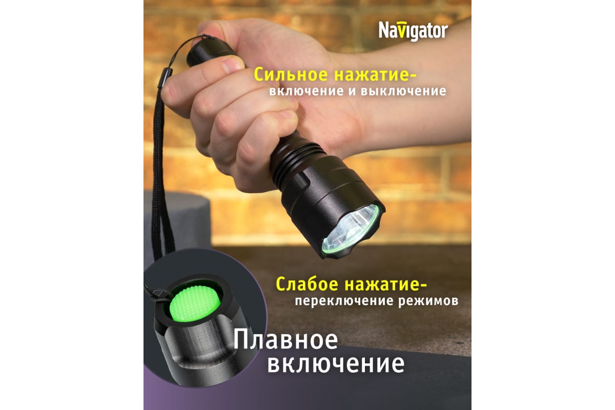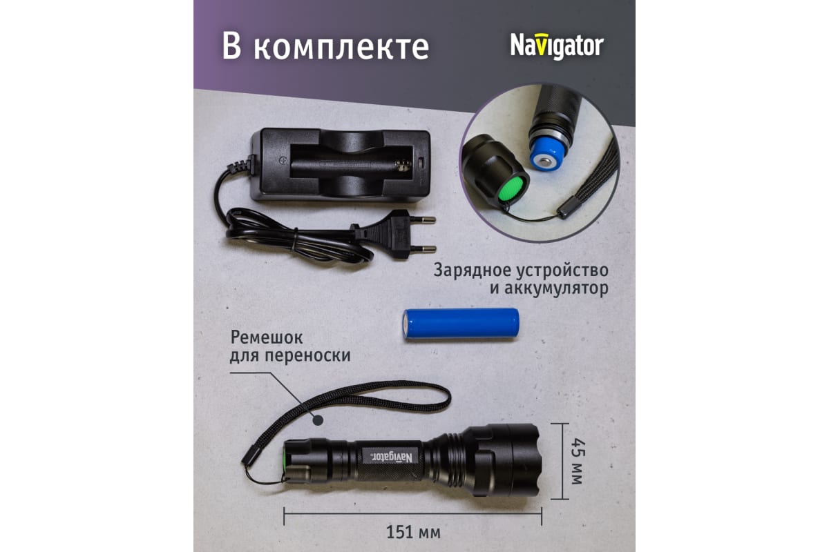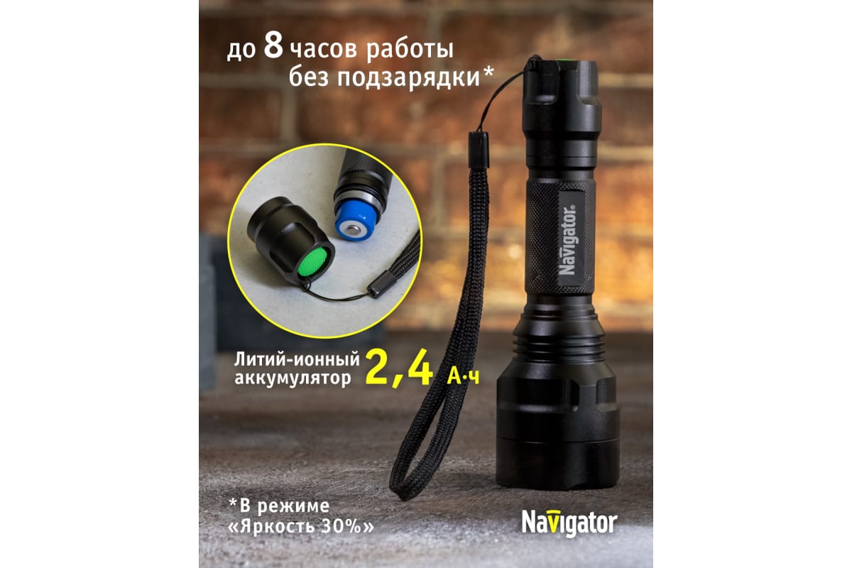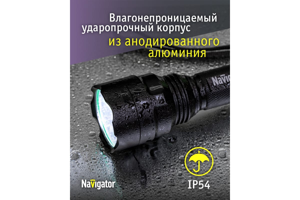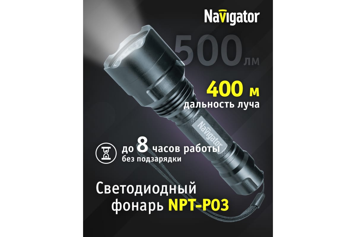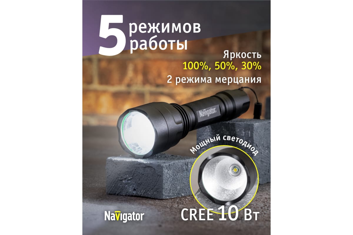 Преимущества Navigator NPT-P03-18650 алюминий, 1 CREE LEDx10Вт, аккумулятор 3.7В, 2А 71583