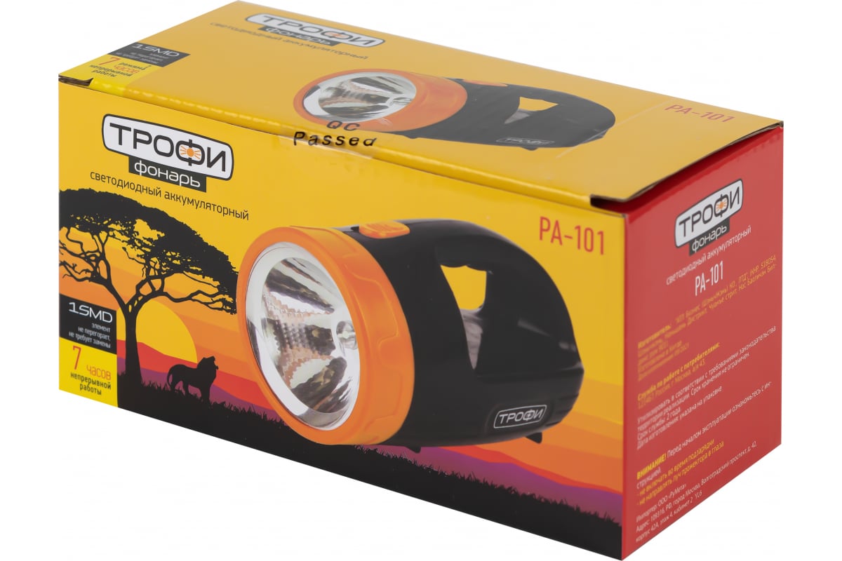 Светодиодный аккумуляторный фонарь прожектор ТРОФИ PA-101 1 режим Б0053340 имеет эргономичную ручку с углублениями для комфортного расположения в руке и удобного переноса. Выпускается в красочной картонной коробке. Прекрасно подходит для подарка к любому празднику.