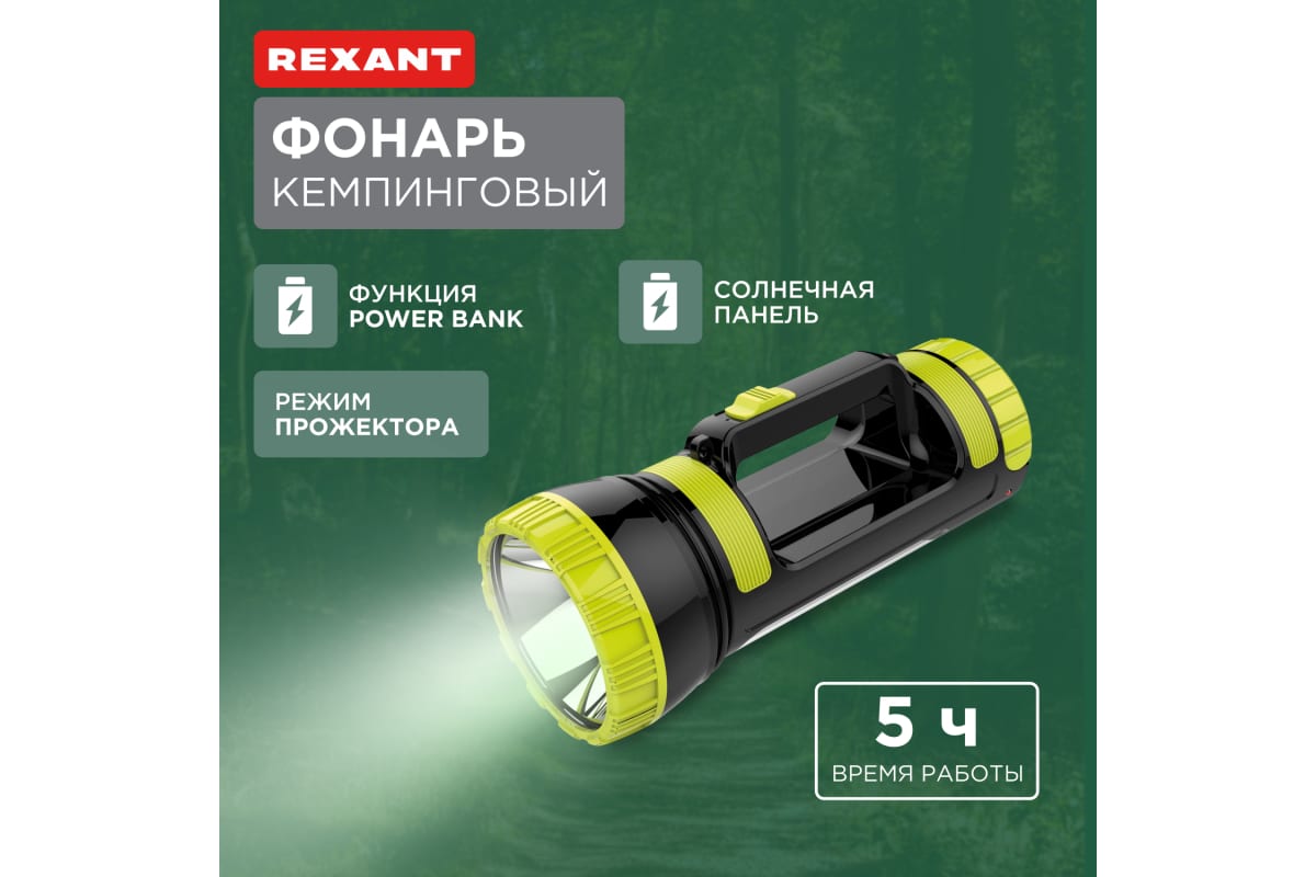 Преимущества REXANT с боковым светом, powerbank, солнечная батарея 75-7822