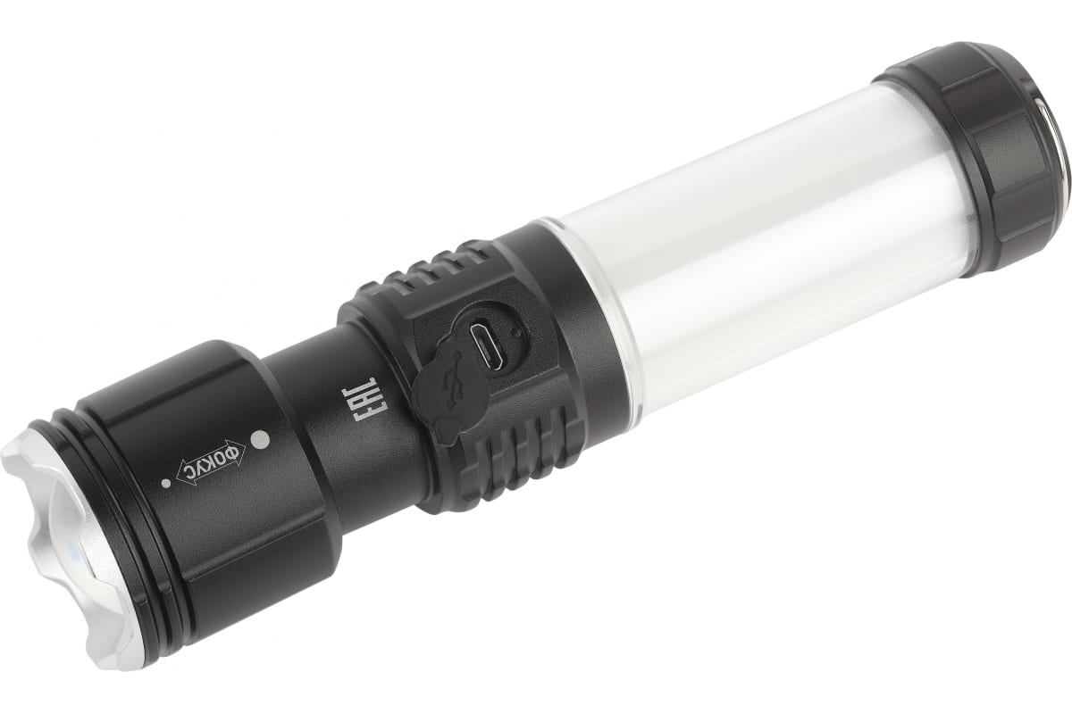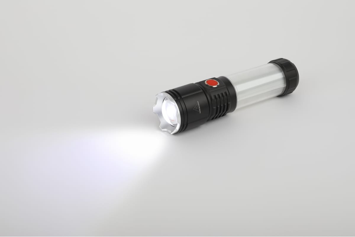 Светодиодный луч повышенной дальности имеет возможность фокусировки. Пять режимов, удобных пользователю - от ближнего заливающего света (для того, чтобы хорошенько осмотреться в темноте) до длинного направленного луча (чтобы определиться с дальнейшим направлением пути).