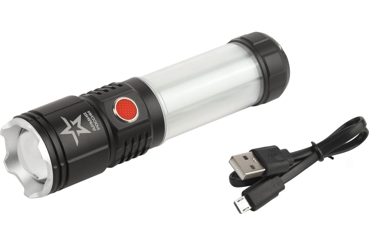 Серия фонарей Армия России - совместный проект отечественного бренда ЭРА и АО "Военторг", действующего на основании лицензии Министерства обороны РФ. Фонарь оснащен емким литиевым аккумулятором (2100 мАч), одного заряда хватает на 10 часов непрерывной работы. Зарядное устройство в комплекте.