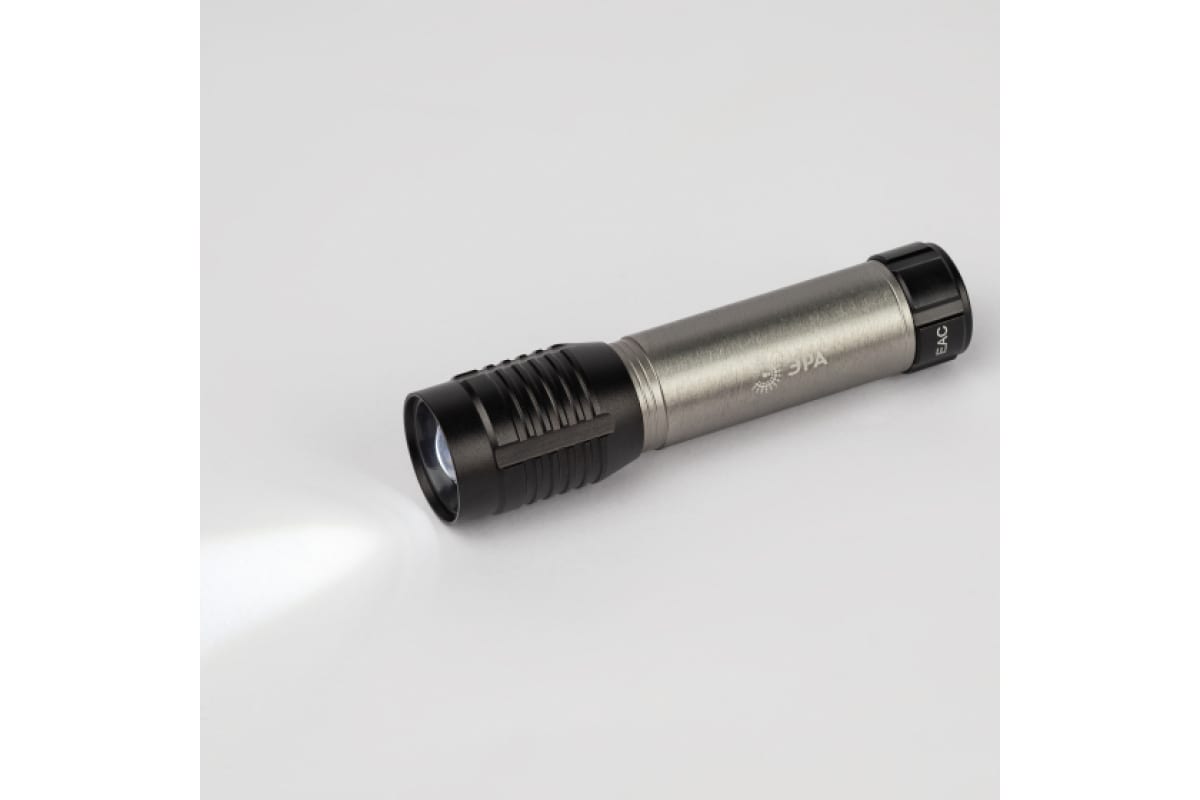 ЭРА UB-604 – ручной LED-фонарь с регулируемой фокусировкой луча. Мощность светодиодного фонаря – 5 Вт. Удобно использовать как кемпинговый фонарь, рабочий фонарь. Отличный вариант подарка для мужчины. Этот влагозащищённый фонарь (IP44) можно успешно применять на улице. Светодиодный ручной фонарь ЭРА UB-604 работает от 3 мизинчиковых батареек (ААА). В фонаре установлен мощный яркий светодиод с дальностью света до 125 метров. Световой поток – 415 Лм. Для разных ситуаций применения предусмотрены 3 режима работы: максимальная яркость, 50% яркости, стробирование. Сверхъяркий, суперэкономичный светодиод. Не требует обслуживания и замены на протяжении всего срока службы фонаря.
