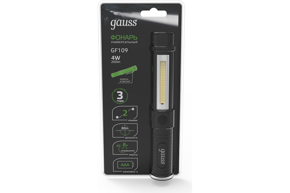 Преимущества Gauss GFL109 4W 200lm 3xAAA LED GF109