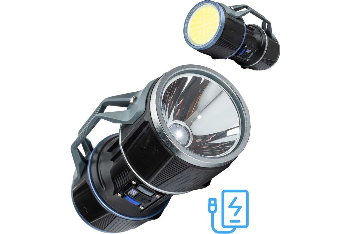 Преимущества КОСМОС прожектор аккум/10Вт+12ВтCOB+кр/Li-ion18650 8000mAh/Powerbank/индикатор/USBС KOC901Lit