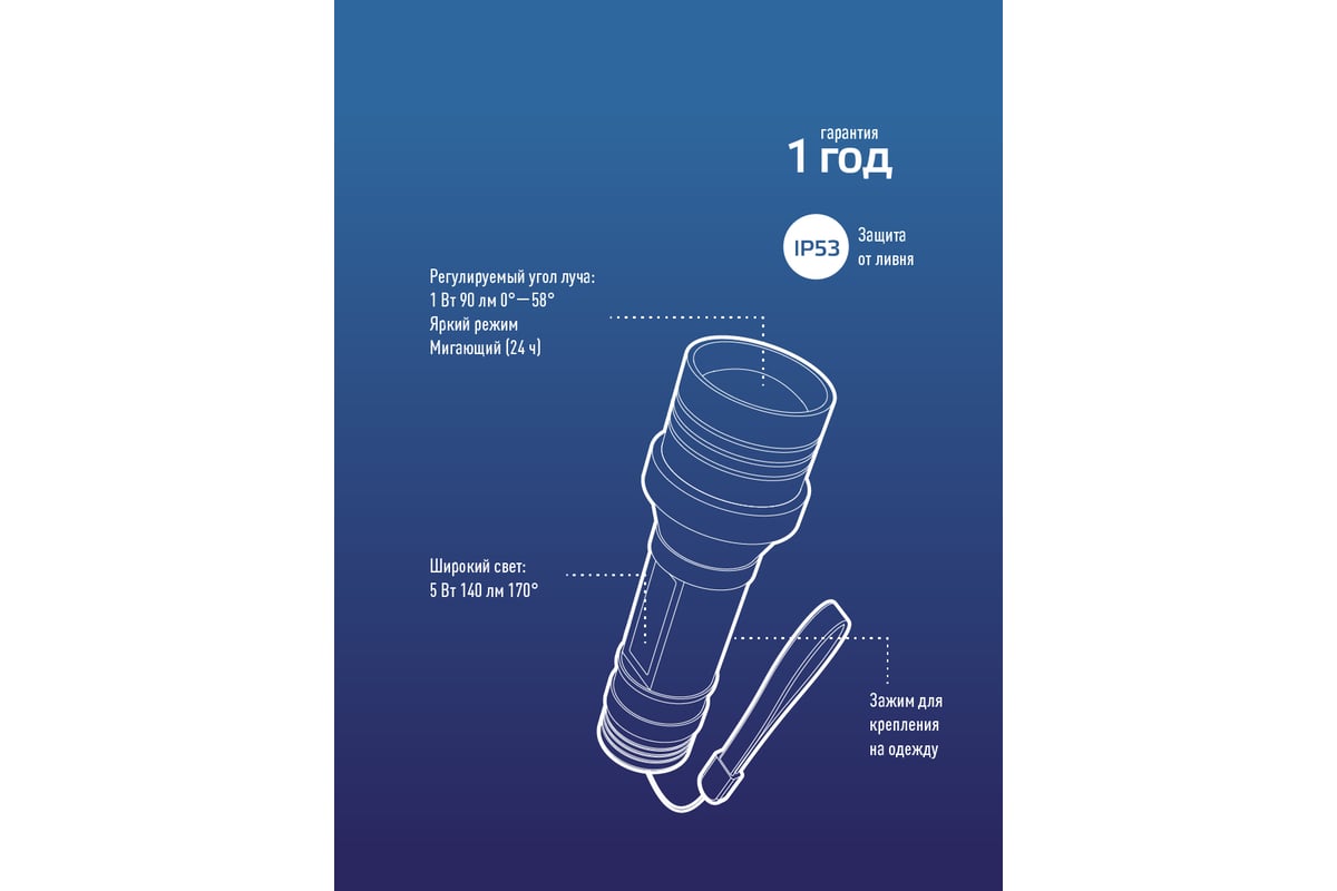 5.Световой поток: 90 лм. (луч)/140 лм. (широкий свет, боковой светильник).