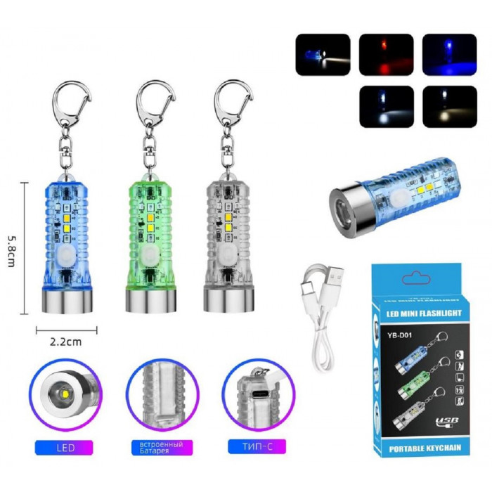 Фонарь-брелок с АКБ YYC-0824-COB 1 свет. + 4 свет., зар. Type-C
