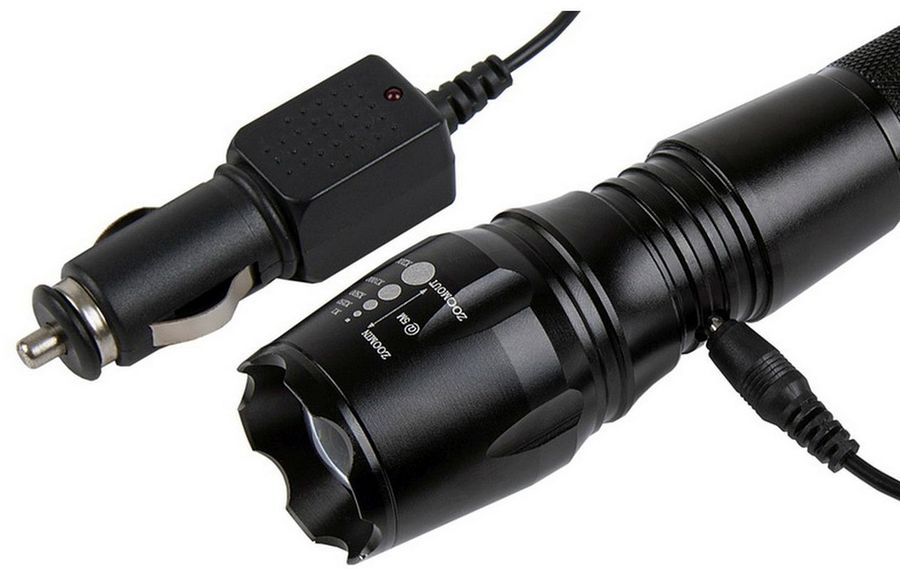 Адаптер для подзарядки от электрической сети 220 В, зарядное устройство для авто от сети 12 В, ремешок для фиксации фонаря на запястье, инструкция
