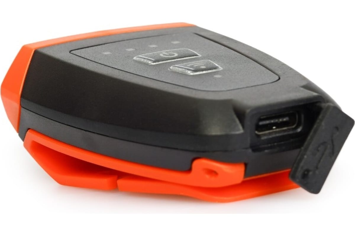 Степень защиты IPX5 предотвращает попадание влаги под корпус изделия. Цветовое оформление в черно-оранжевой гамме не только обеспечивает стильный внешний вид, но и увеличивает шансы быстро найти фонарь при необходимости.