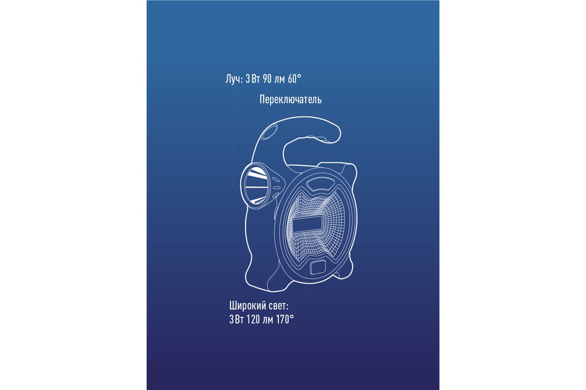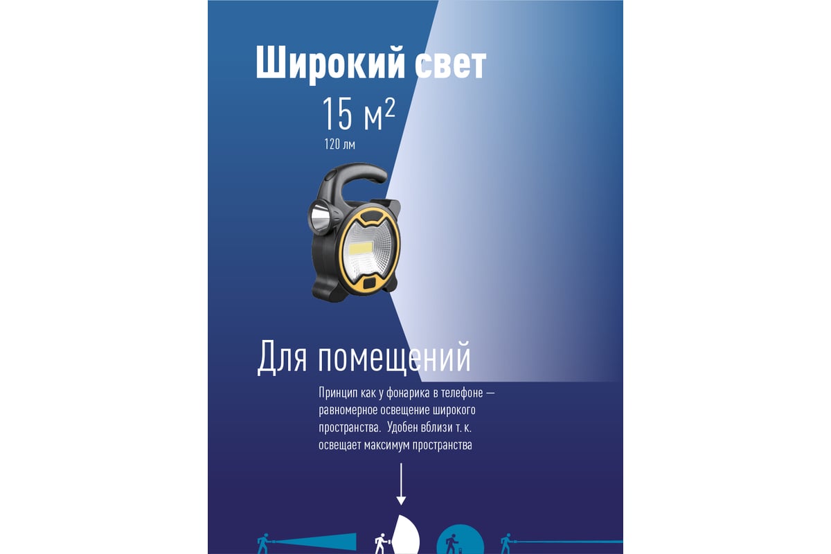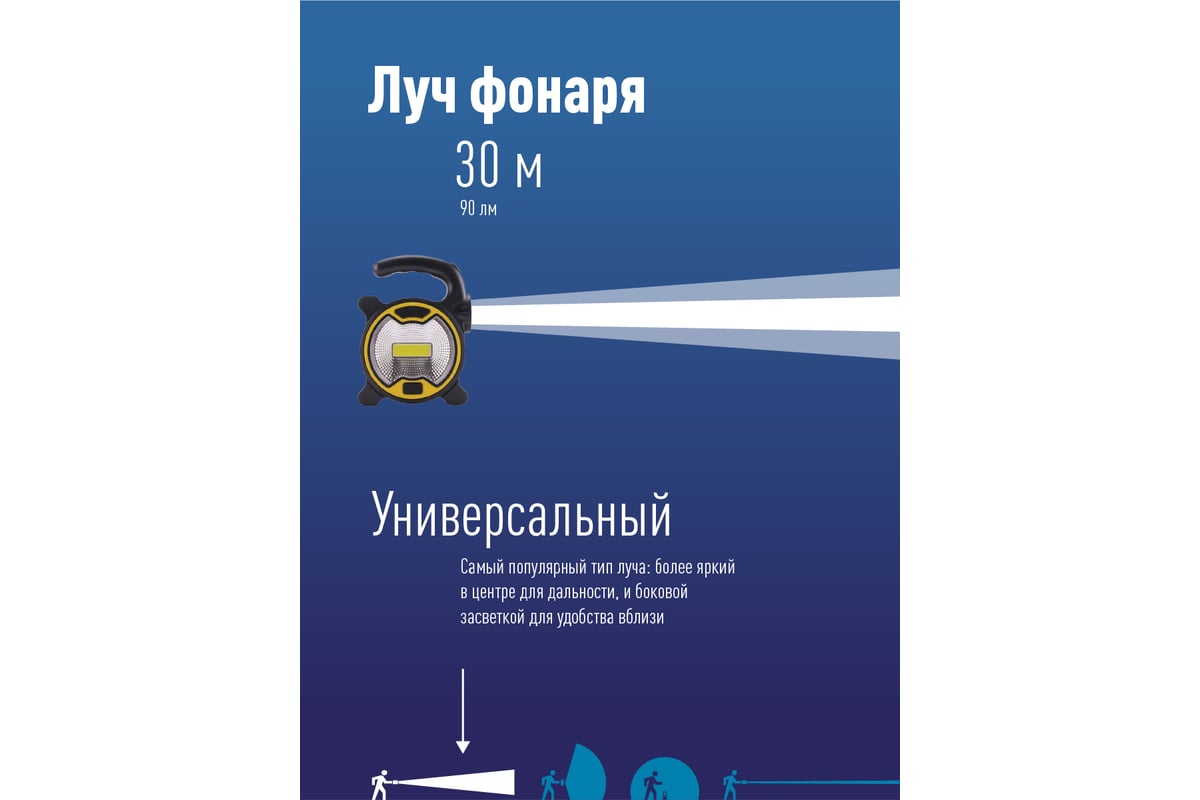 Фонарь-светильник КОСМОС 1Вт направленный свет, 3 Вт COB LED, питание от 3хАА KOC3030LED - функциональный фонарь с двумя полноценными источниками света (широкий ближний свет, и боковой режим - луч). Удобен для подсветки в хозяйстве или запасного света в машине. Простая конструкция и работа от батареек позволили установить полноценный COB-светодиод широкого света на 3Вт без удорожания фонаря. Источник света: широкий ближний свет - 3Вт COB LED (cветовой поток – 120 лм.); боковой режим луч - 1Вт LED (cветовой поток – 90 лм).