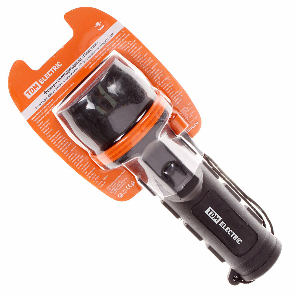 Технические характеристики TDM пластик, 7 светодиодов, 21 лм/Вт, батарейки 2xD SQ0350-0015
