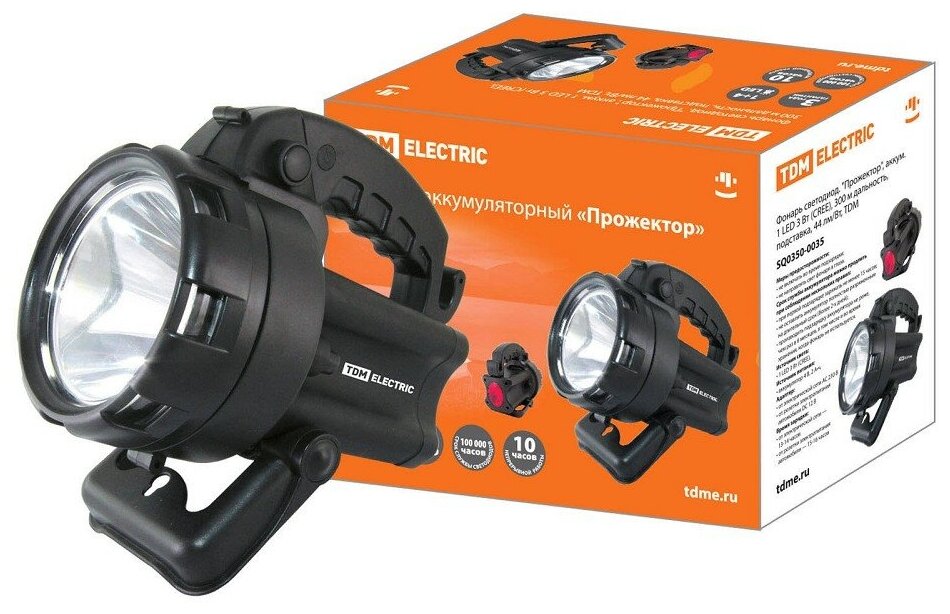 Технические характеристики TDM CREE Прожектор, аккум. 1 LED 3 Вт, 300 м дальность, 44 лм/Вт SQ0350-0035