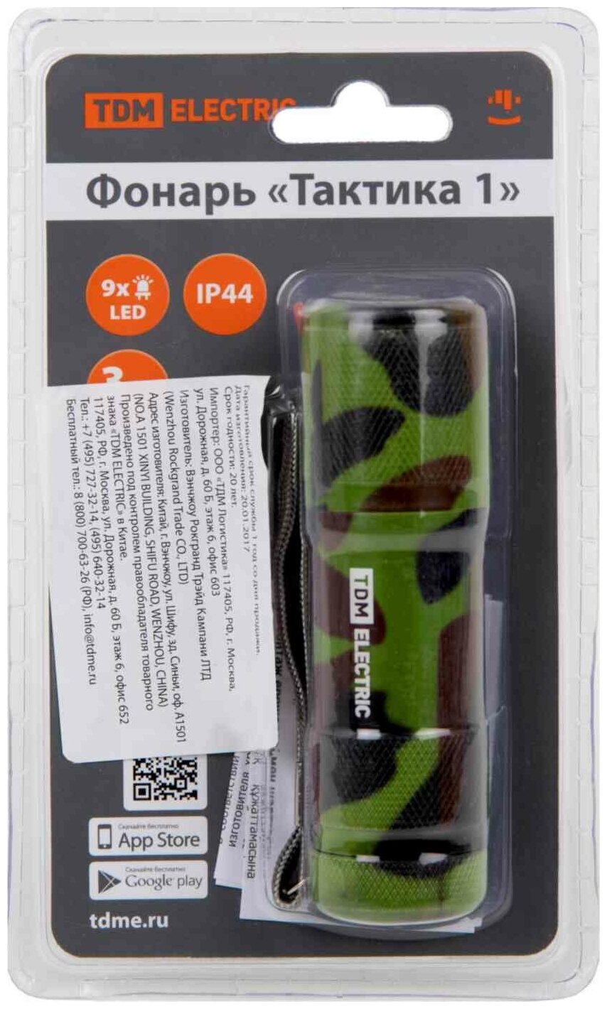 Технические характеристики TDM Тактика 1 9 светодиодов, алюм., 36 лм, бат. 3*AAA SQ0350-0093