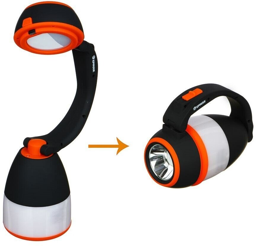 Фонарь-трансформер “Ермак” 3в1 – удобный и универсальный осветительный прибор, который будет незаменим во время отдыха на природе, во время туристического похода или отдыха в кемпинге.