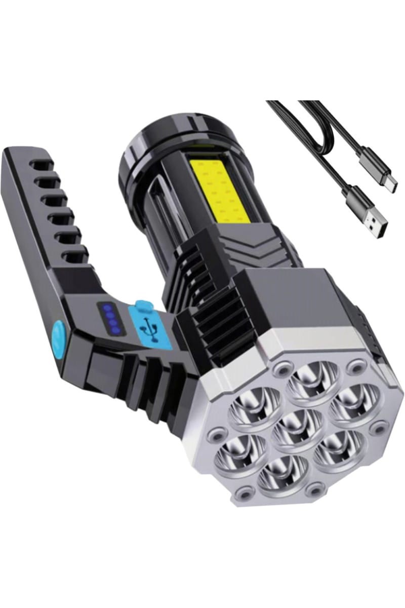 Дистанция освещения - до 300 метров. 4 режима работы - 7 точечных LED 100% / 50% / мигающий / COB.
