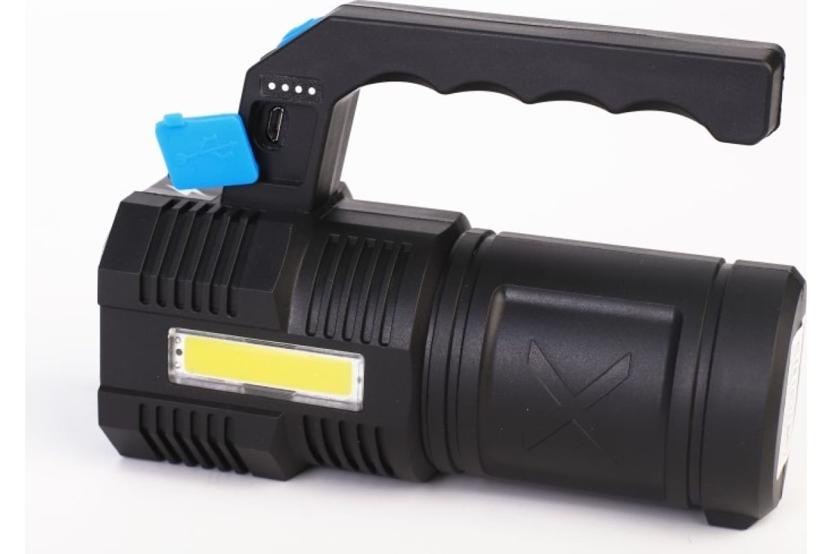 Дистанция освещения - до 300 метров. 4 режима работы - точечный LED 100% / 50% / мигающий / COB.