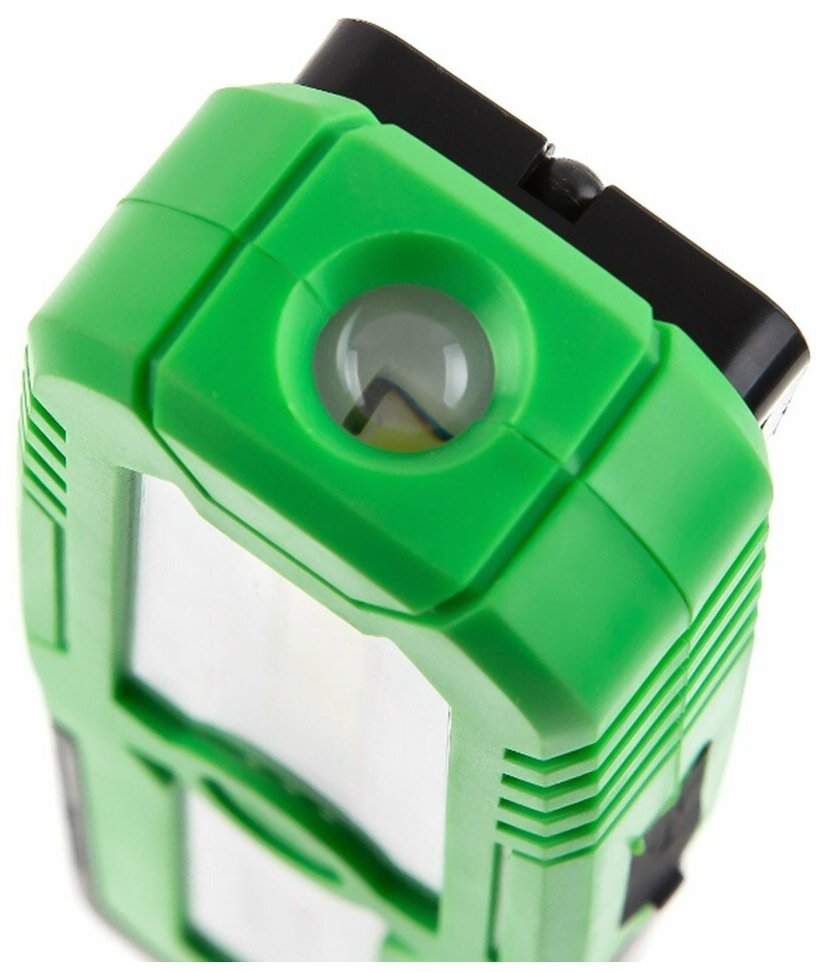 Можно использовать в качестве рабочей лампы или ручного фонаря. Вместе с магнитной поворотной опорой и крюком для подвешивания фонарь удобно использовать в любых целях - начиная от подсветки гаража и заканчивая пикником.