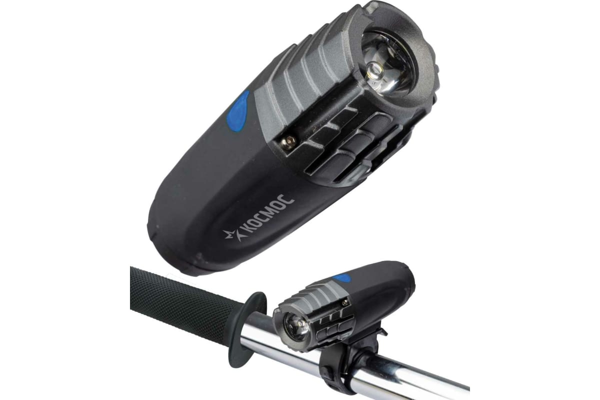 -Велосипедный фонарь КОСМОС 1Вт LED/с коллиматорной линзой/3xAAА/ABS-пластик/держатель-крепление, KOC402B - светит в любую погоду, защищен от дождя.