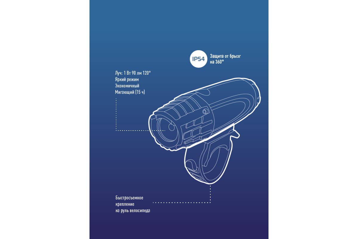 Велосипедный фонарь КОСМОС 1Вт LED/с коллиматорной линзой/3xAAА/ABS-пластик/держатель-крепление, KOC402B светит в любую погоду, защищен от дождя. Быстросъемное крепление отсоединяется в один клик, превращая фару в ручной фонарь. Луч фонаря – светит вперед, направленный свет. Три режима работы – яркий, средний и мигающий. Коллиматорная линза максимально эффективно фокусирует свет.