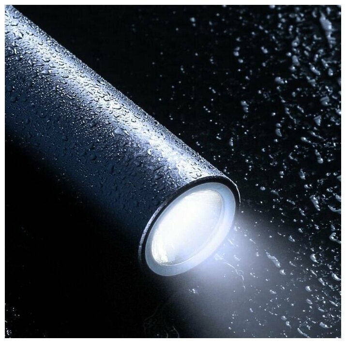 Корпус фонарика имеет защиту от брызг и влаги, благодаря этому, вы сможете использовать фонарик во время проливного дождя или снега.