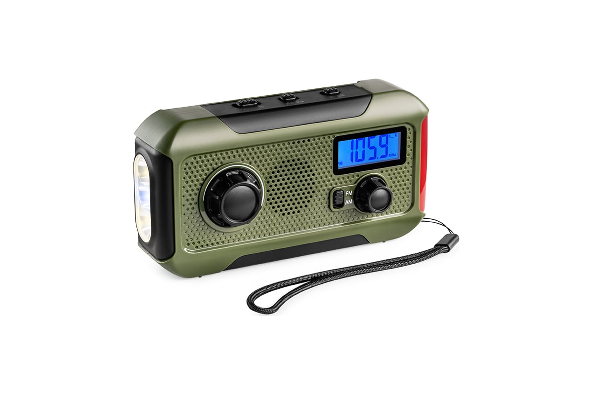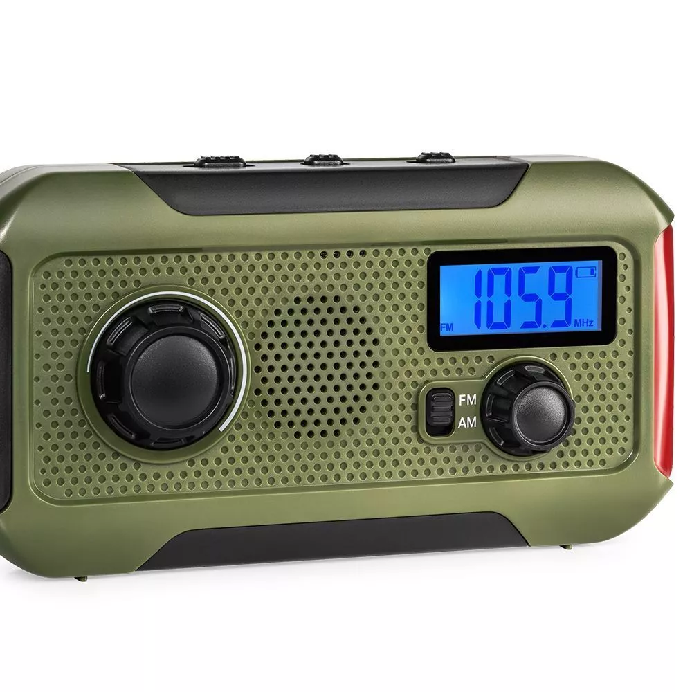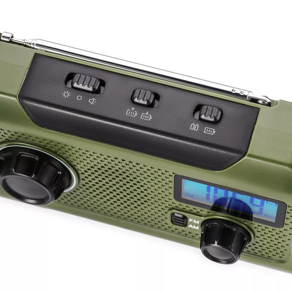 На передней части расположены индикатор уровня заряда, дисплей, регулятор громкости, переключатель FM/AM диапазона и переключатель частот радиостанции. Регулятор громкости включает радио, уменьшает и увеличивает громкость устройства.