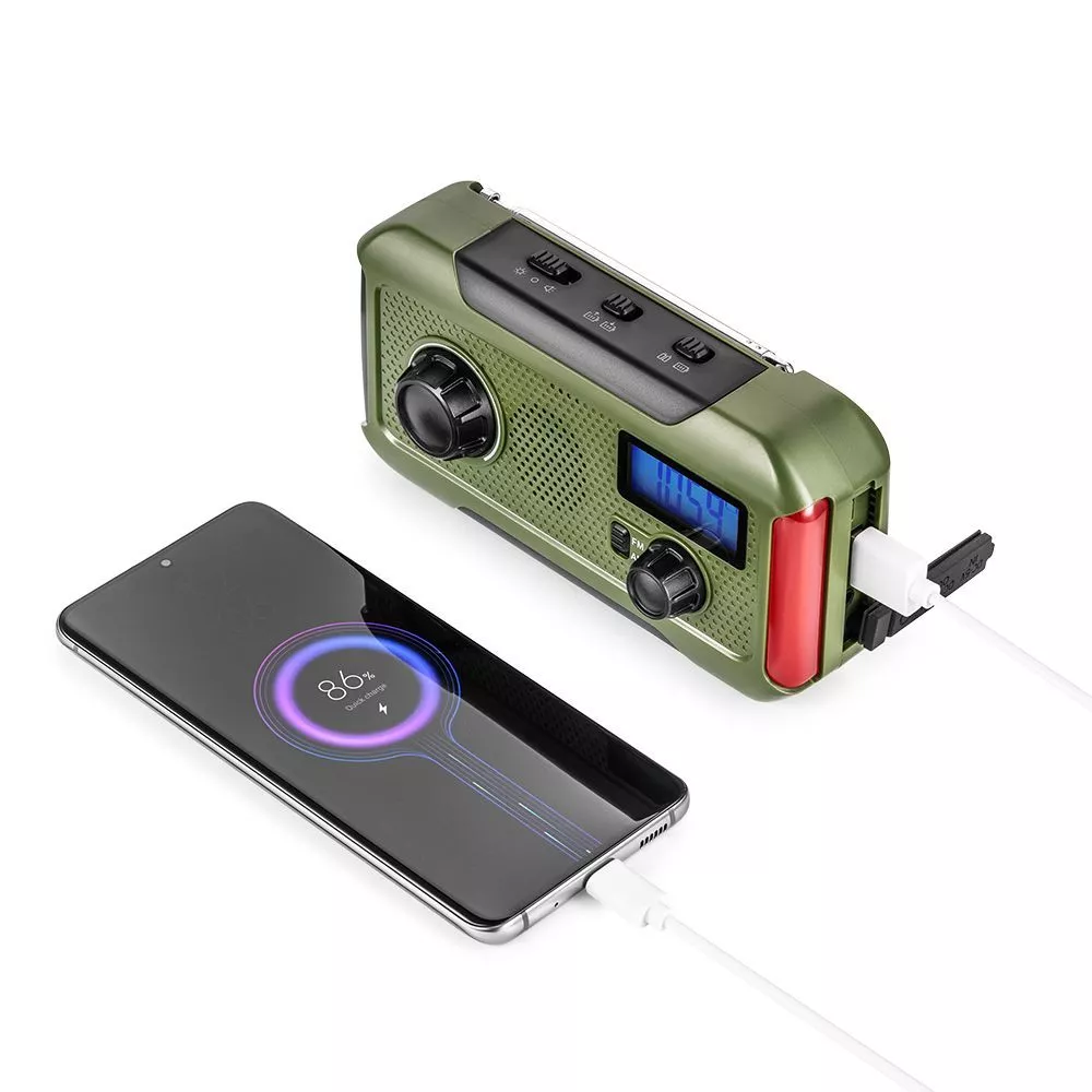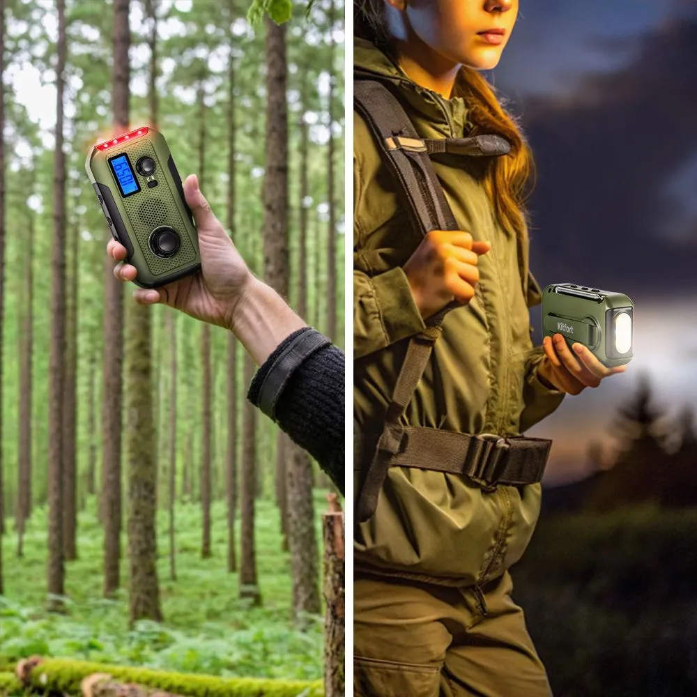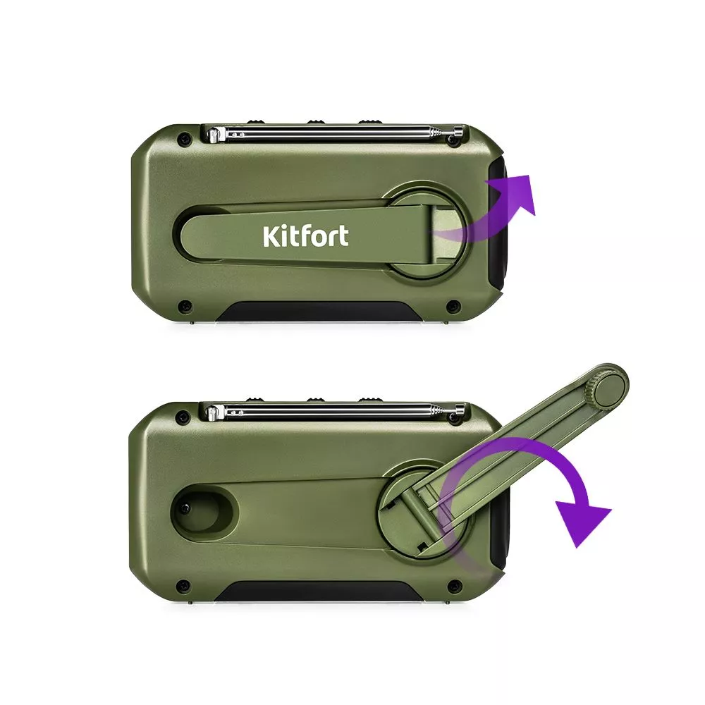 Кемпинговый фонарь KITFORT "5 в 1" КТ-3341 - многофункциональное устройство для походов или путешествий, сочетающее в себе функции радиоприемника, фонаря, сигнальных света и звука, пауэрбанка и генератора электроэнергии.