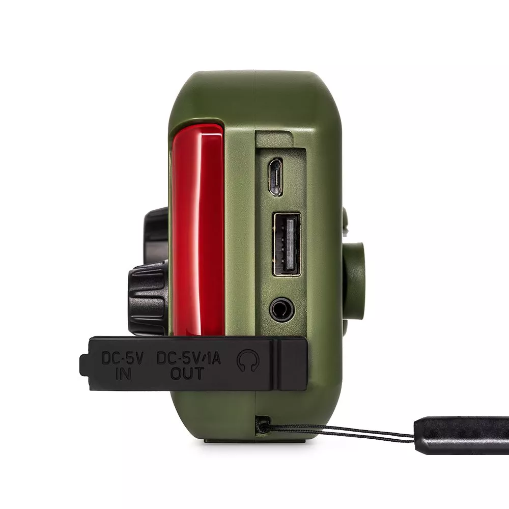 Сбоку расположены порт USB, разъем Micro-USB и разъем mini-jack, чтобы радио можно было слушать в наушниках. Разъемы закрыты заглушкой для защиты от пыли, грязи или влаги.