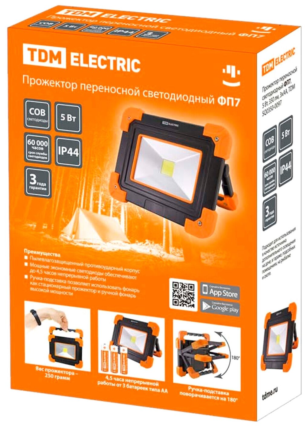 Технические характеристики TDM ФП7 5 Вт, 350 лм, 3xAA, SQ0350-0097