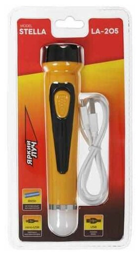 -Фонарь ЯРКИЙ ЛУЧ LA-205 Stella 4606400106203 работает от встроенного Li-Ion аккумулятора.