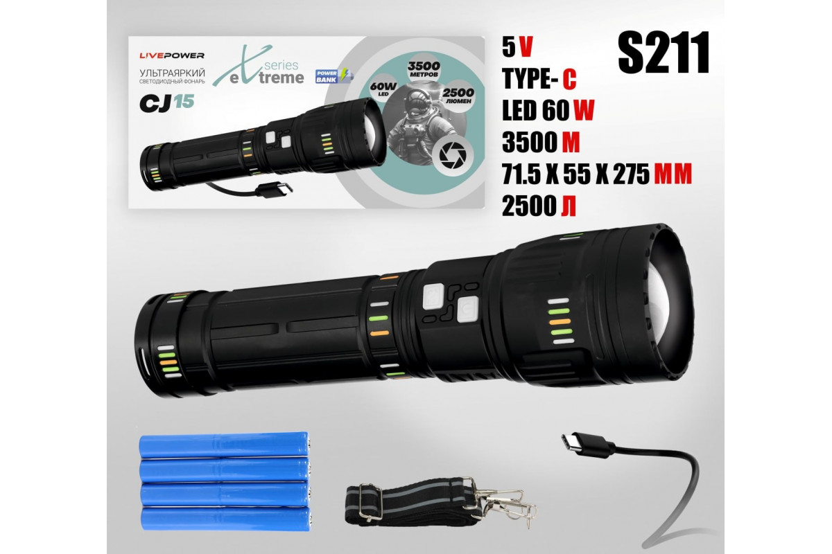 • Режимы свечения: 5 (100%, 50%, 25%,