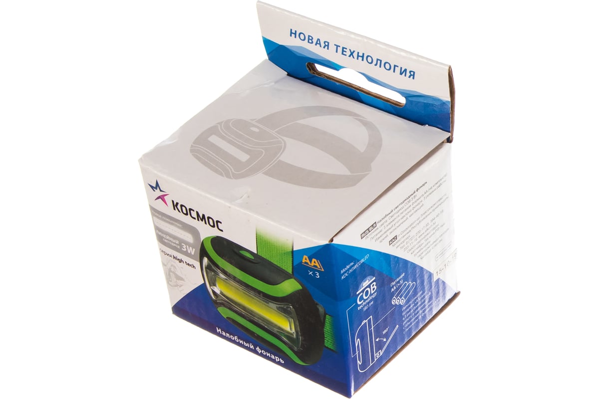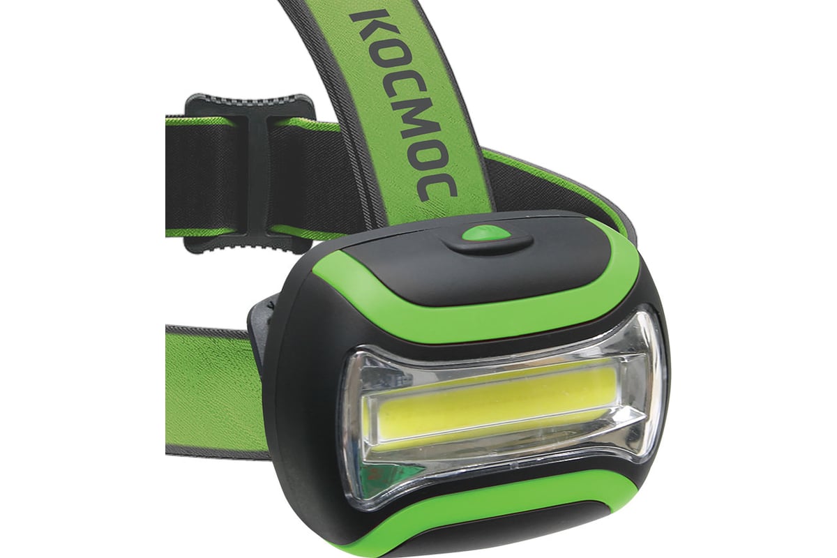 Светодиодный налобный фонарь КОСМОС 3Вт КОБ 417214 KOC-H3WCOBLED обеспечивает превосходное освещение с широким углом рассеивания в локальной зоне. Дает возможность выполнения необходимых работ обеими руками. Устройство имеет три режима яркости, один из которых - мигающий.