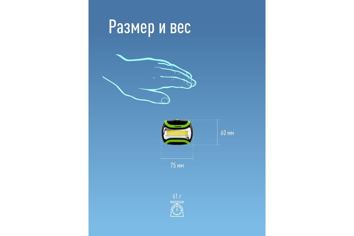 5.Время работы светодиодного налобного фонаря КОСМОС KOC-H3WCOBLED 417214: 20 ч;