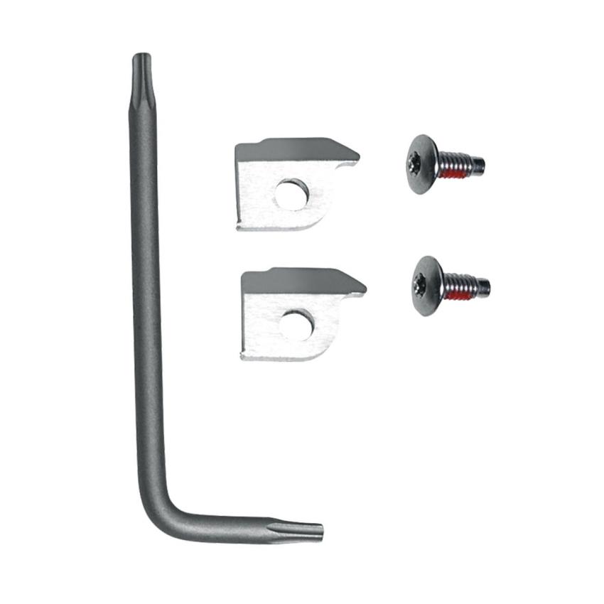 Описание: Набор сменных вставок высокой твердости предназначен для самостоятельного ремонта кусачек мультитулов. В комплект набора входят: ластины с режущей кромкой из стали марки 154СМ – 2 шт., ключ двусторонний г-образный – 1 шт., винты крепёжные с фиксирующей мастикой – 2 шт.